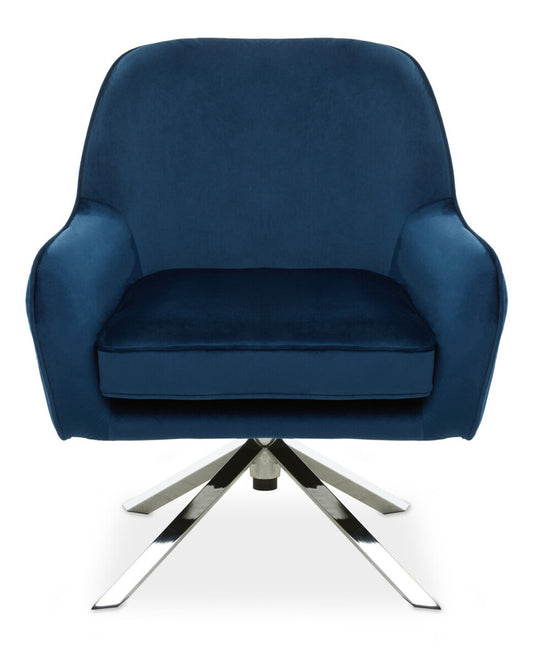Curved Back & Flared Arm Swivel Chair In Midnight Blue Velvet | Wood Velvet
