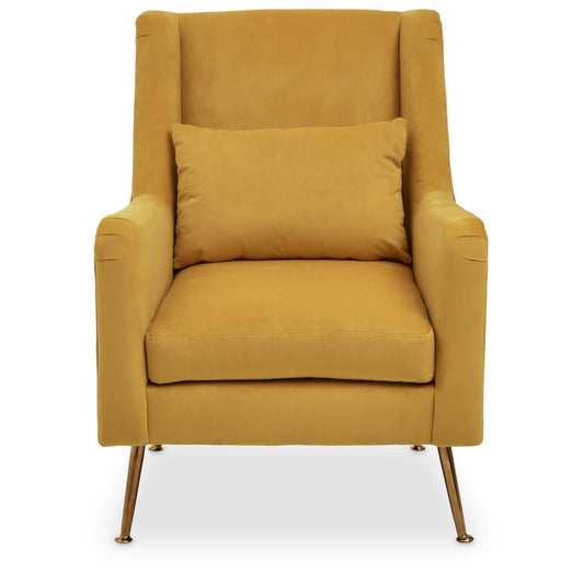 Mid-century Modern Chair In Plush Yellow Velvet & Angular Gold Finish Legs | Wood Velvet